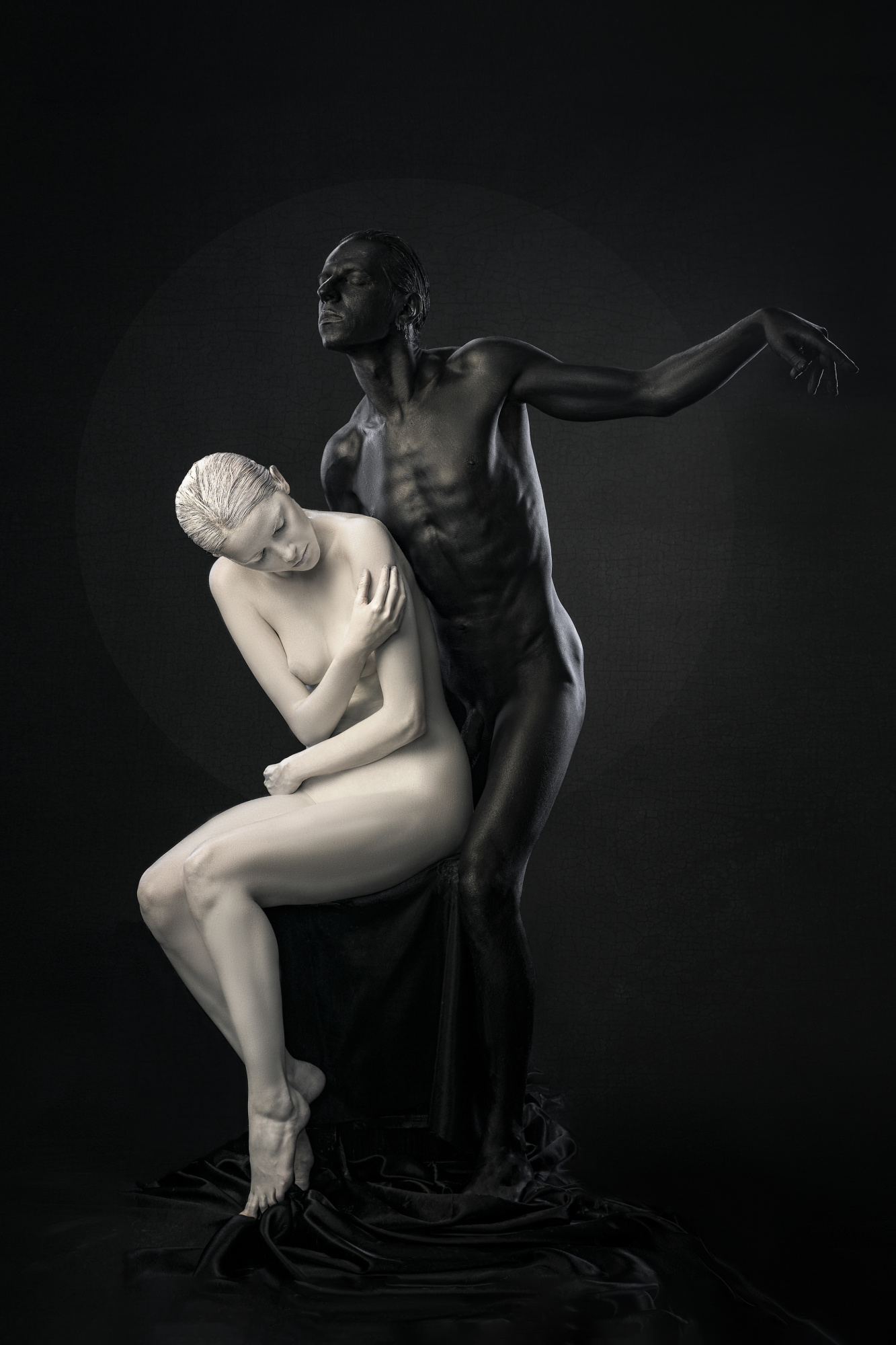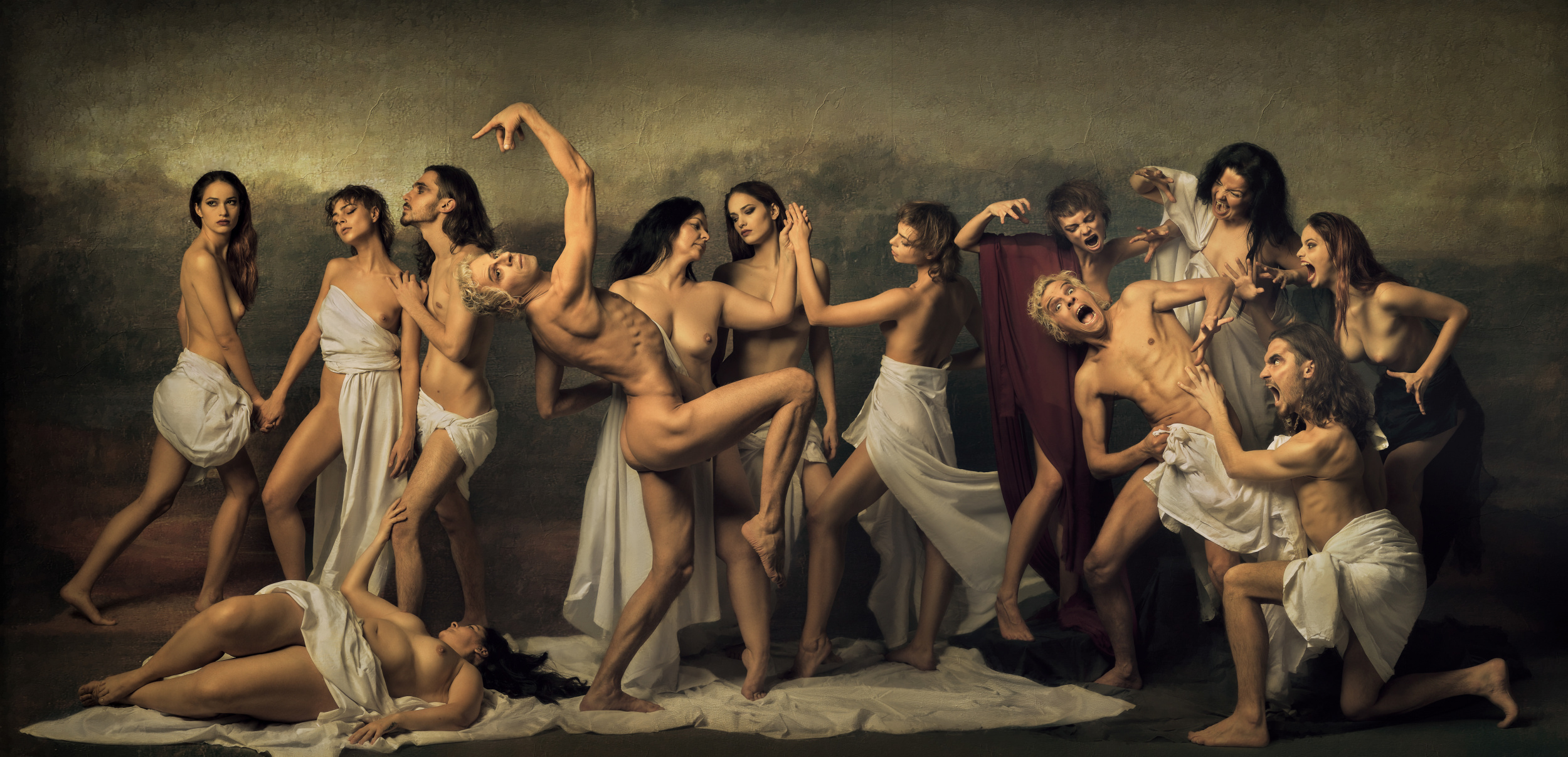 Pietà is dear to me. I wanted to re-engage a sacred archetype through contemporary portraiture—grief as a universal, not historical, condition. We built it with real drapery, restrained palette, and meticulous hands placement. The light is feathered from above-left, with negative fill to keep the values solemn. There’s a quiet halo suggested by separation, not a graphic line. On set, we let silence do the directing. What moved me most was the tenderness between the models when the camera wasn’t clicking—that “between gestures” truth.